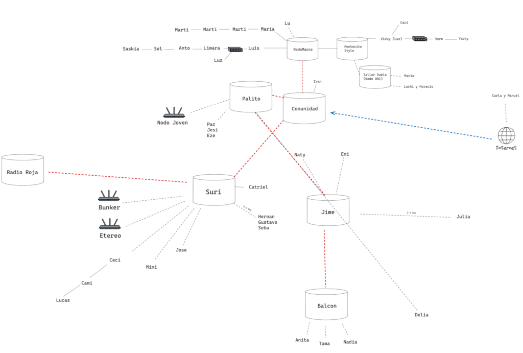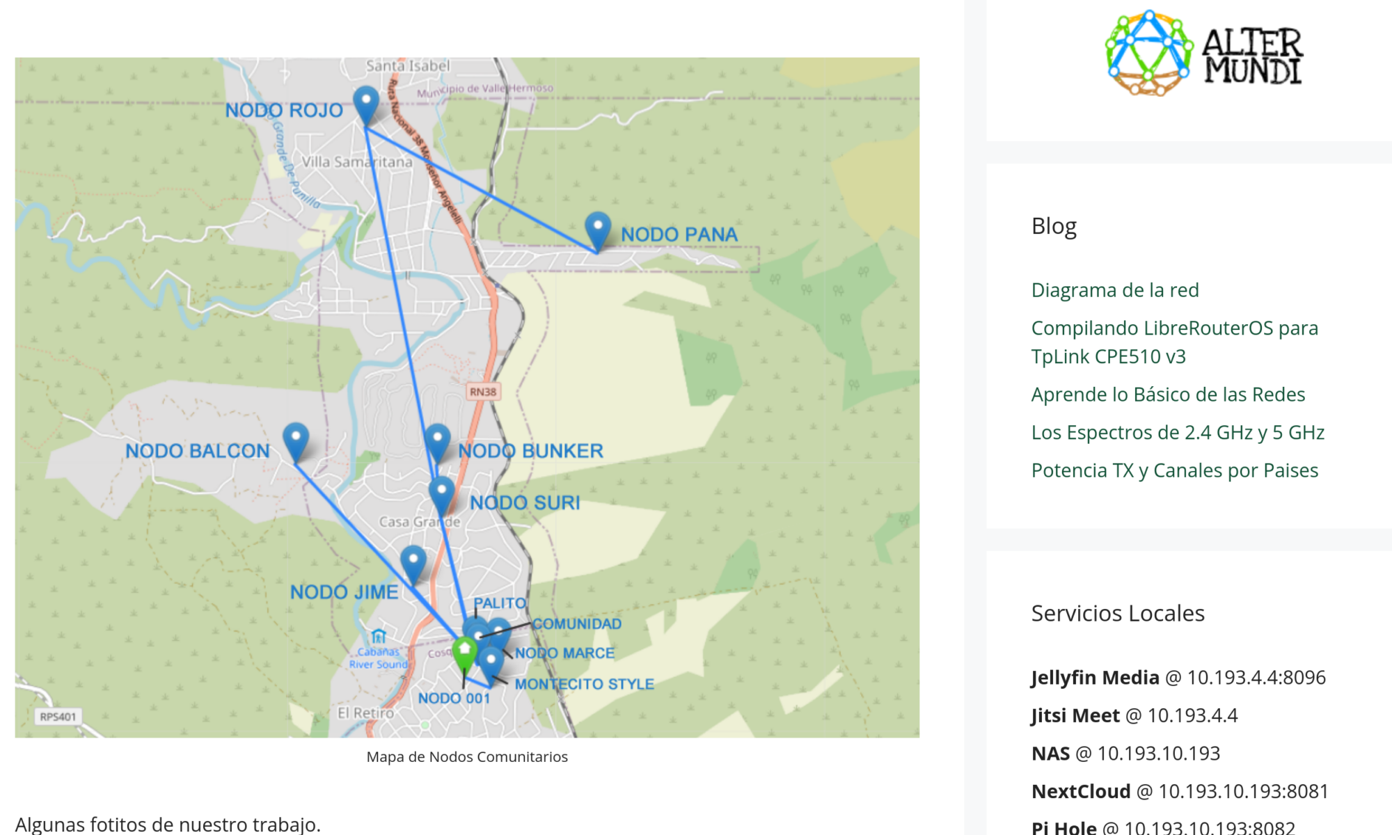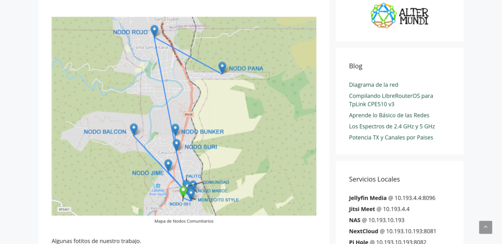 Sbriciamo le mappe di un’altra comunità che ha decio di costruirsi una rete mesh. Loro vivono in Argentina a Casa Grande, Córdoba. Sono 60 nuclei abitativi che si condivido una singola “porta” verso l’internet.